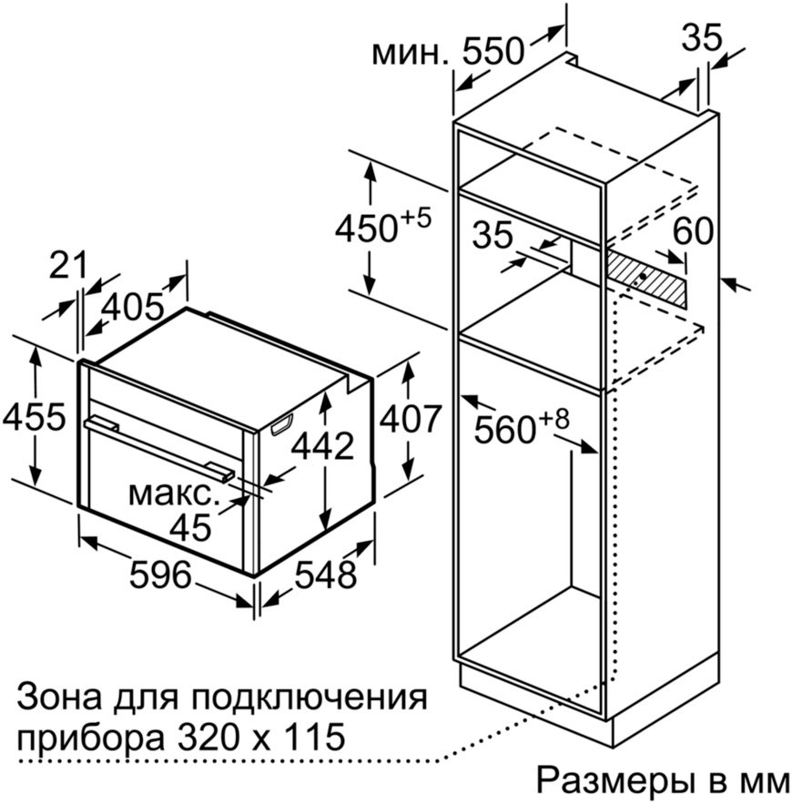 Электрический духовой шкаф, объем 45 л, мощность подключения 3650 Вт, класс энергопотребления A, максимальная температура 275 °С, способ очистки эмаль легкой очистки, переключатели сенсорные, количество стекол 4, гриль электрический, автоматическое приготовление, пароварка, телескопические направляющие, температурный зонд, дверца духовки откидная, дисплей, таймер с отключением, защитное отключение, защита от детей, ширина ниши для встраивания 56 см..