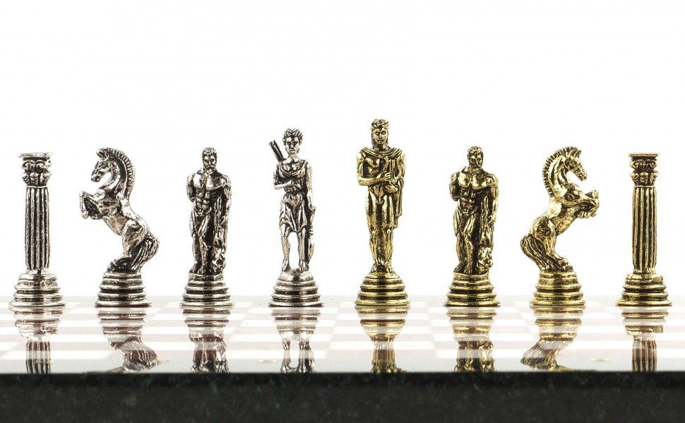 Шахматы с металлическими фигурами "Олимпийские игры" 32х32 см лемезит мрамор