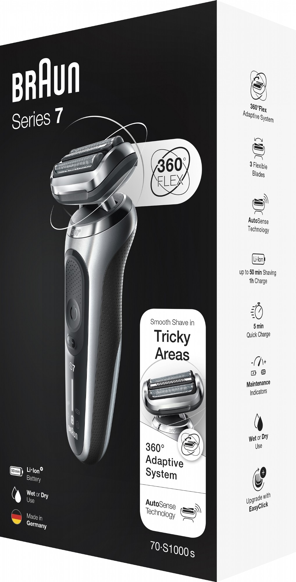 Функции и возможностиавтоопределение щетины / AutoSense /плавающая головка / сетка / 360Flex /возможность промывки водойиндикатор очисткизащита от детей