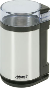 Ножевая кофемолка; мощность 180 Вт; вместимость 65 г; блокировка при включении; намотка кабеля.