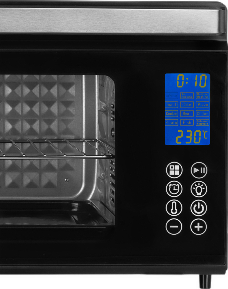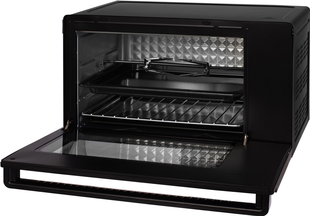 Мощность 1800 Вт; электронное управление; объем 45 л; регулируемый термостат; максимальная температура нагрева 230 °C; кол-во режимов 12; таймер 24 ч; внутреннее покрытие нержавеющая сталь; конвекция; в комплекте: держатель для вертела, вертел, решетка, противень.