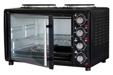 Мощность 1400 Вт; механическое управление; объем 25 л; регулируемый термостат; максимальная температура нагрева 250 °C; внутреннее покрытие нержавеющая сталь; наличие конфорок; в комплекте: решетка, противень.