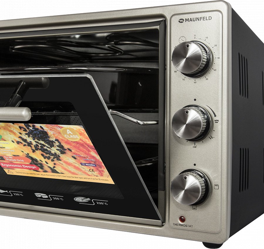 Мощность 1300 Вт; механическое управление; объем 36 л; регулируемый термостат; максимальная температура нагрева 300 °C; кол-во режимов 3; таймер 90 мин; внутреннее покрытие эмаль; в комплекте: решетка, противень.