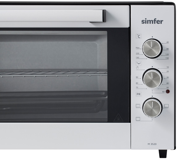 Мощность 1300 Вт, механическое управление, объем 35 л, регулируемый термостат, максимальная температура нагрева 250 °C, кол-во режимов 3, таймер 90 мин, внутреннее покрытие нержавеющая сталь, в комплекте: противень, решетка.