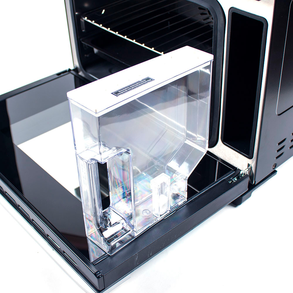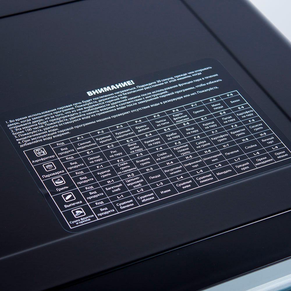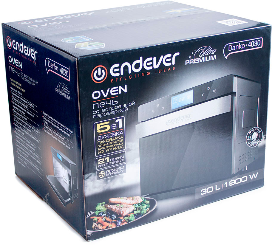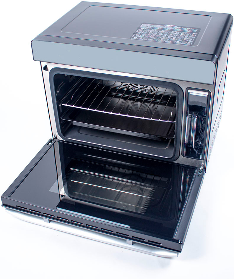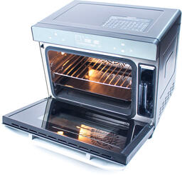 Мощность 1900 Вт, электронное управление, объем 30 л, регулируемый термостат, максимальная температура нагрева 230 °C, кол-во режимов 21, таймер 24 ч, внутреннее покрытие нержавеющая сталь, конвекция, разморозка, в комплекте: противень, решетка.