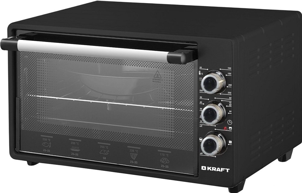 Мощность 1500 Вт; механическое управление; объем 32 л; регулируемый термостат; максимальная температура нагрева 320 °C; кол-во режимов 3; таймер 90 мин; внутреннее покрытие нержавеющая сталь; в комплекте: решетка, противень.