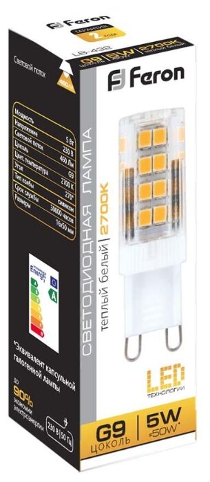 - Эквивалент лампы накаливания 40 Вт