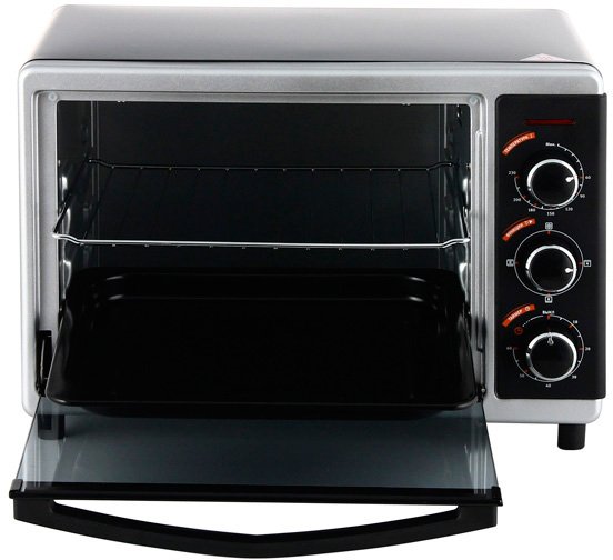 Мощность 1000 Вт; механическое управление; объем 18 л; регулируемый термостат; максимальная температура нагрева 230 °C; кол-во режимов 4; таймер 60 мин; внутреннее покрытие нержавеющая сталь; конвекция; разморозка; в комплекте: противень, решетка, поддон для крошек.