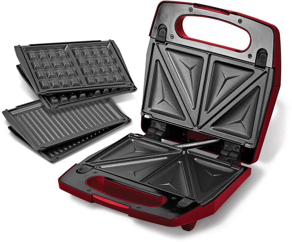 Сэндвичница; мощность 700 Вт; количество кусочков 4; съемные пластины; функция гриля; дополнительные пластины: для вафель, для гриля.