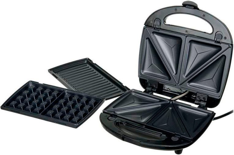 Сэндвичница, мощность 700 Вт, количество кусочков 4, съемные пластины, количество съемных пластин 3, функция гриля, пластины: для гриля, для сэндвичей, для венских вафель.