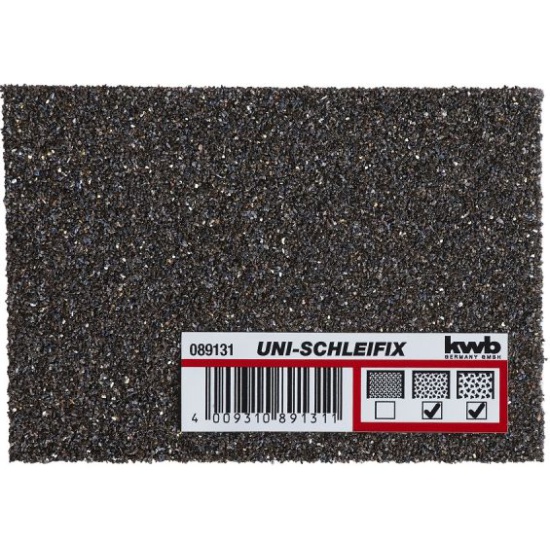 Губки шлифовальные UNI-SCHLEIFIX, с 4-х сторонним напылением оксида алюминия, «ДЕРЕВО и МЕТАЛЛ», Карборунд, пригодны для сухой и мокрой шлифовки. Шлифовальную крошку можно смывать. Без упаковки в минидисплеях. Особенно хорошо подходит для шлифования рельефных поверхностей, для удаления ржавчины, красок, для зачистки и подшлифовки лаков на основе синтетических смол и акриловых лаков, для подшлифовки оконных и дверных рам перед новой окраской.