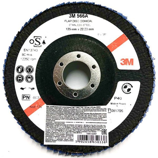 Круг 3M 566A лепестковый торцевой конический, P40, (125мм х 22мм), 65033 7000104457