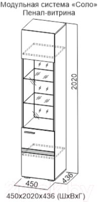 - Тип шкаф-пенал с витриной