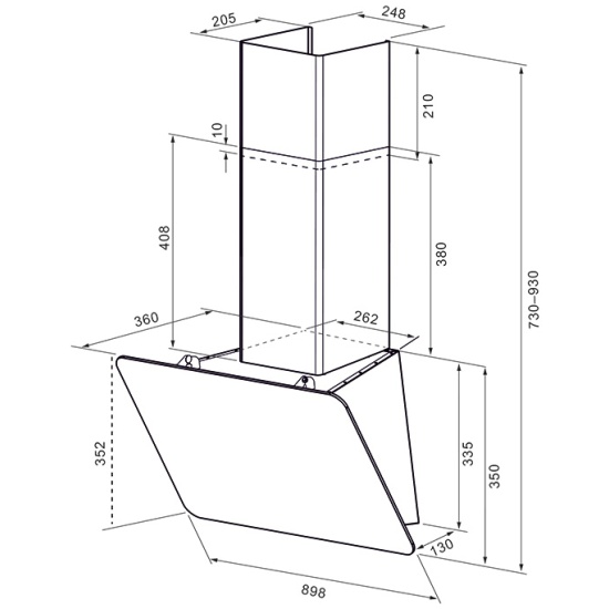 Откидная панель вытяжки полностью выполнена из стекла, что делает эту модель идеальным дополнением любой кухни как в классическом стиле, так и в стиле модерн и хай-тек.