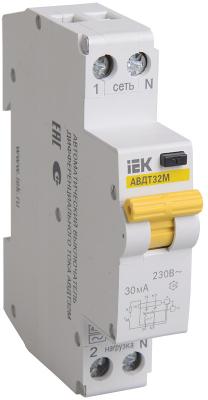 - Характеристики товара Автоматические выключатели дифференциального тока АВДТ32М для однофазных сетей в одномодульном исполнении (18мм) предназначены для защиты человека от поражения электрическим током при повреждении изоляции электроустановок, а также для защиты от перегрузки и короткого замыкания в сетях переменного тока напряжением 230 В и частотой 50 Гц. и по своим характеристикам соответствуют ГОСТ Р 51327.1 и ГОСТ Р 51327.2.2. Количество полюсов: 2 Количество защищенных полюсов: 1 Номинальный ток: 20 А Номин раб напряжение: 230 В Отключающая способность по EN 60898: 4,5 кА Номин откл диф ток: 10 мА Тип тока утечки: Переменный (AC) Характеристика срабатывания - кривая тока: C Ширина по количеству модульных расстояний: 18 мм Макс сечение входящего кабеля2: 6 мм Тип монтажа: на DIN-рейку Частота: 50 Гц Степень защиты - IP: IP20