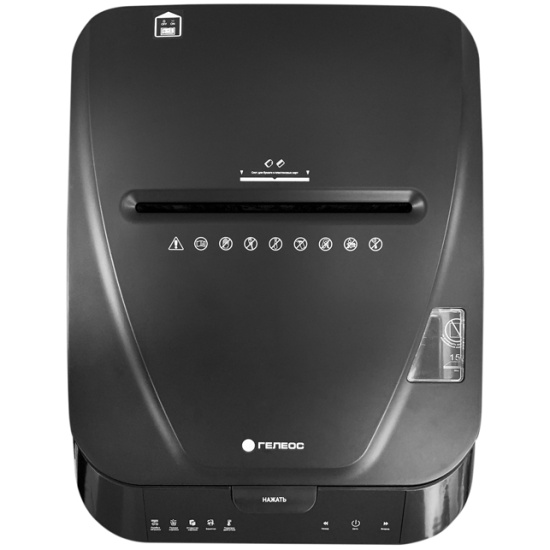 Гелеос АП 40-4 — уничтожитель бумаг с функцией автоподачиПозволяет уничтожать документы стопками до 150 листов плотностью 80 г/м2 за 10 минут, вместо того чтобы загружать их по несколько штук и тратить больше времени.Время безостановочной работы аппарата составляет 60 минут, после чего шредеру необходимо 30 минут, чтобы очтыть. Этот показатель является одним из лучших на сегодняшний день среди подобных устройств.Вместительная корзина обеспечит удобство при наполнении отработанного материала, а подробная индикация поможет разобраться в режимах работы.Особенности шредера Гелеос АП 40-4:автоподача, которая существенно экономит время и снижает уровень трудозатрат;электронный датчик пуска при подаче бумаги;индикатор замятия бумаги;индикатор наполнения корзины;автостоп при заполнении корзины;индикатор открытой дверцы;ECO — система автоматического отключения питания при простое от 5 минут;автоматическая защита от перегрева;индикатор перегрева;автоотключение при снятой корзине.