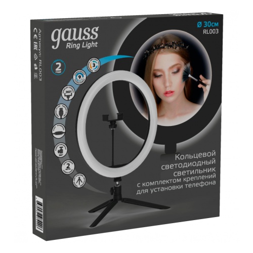 Кольцевая светодиодная лампа Gauss с комплектом креплений для установки телефона. 30 см. RL003 GAUSS
