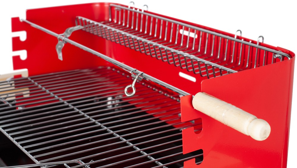 • Функции и возможности регулировка высоты решетки / шампуровдоп. рабочая поверхностьместо для дров/баллонаколеса для транспортировки