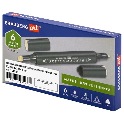 Маркер для скетчинга двусторонний 1 мм - 6 мм BRAUBERG ART CLASSIC, ОРАНЖЕВЫЙ ФЛУОРЕСЦЕНТНЫЙ (F04), 151788 151788СН