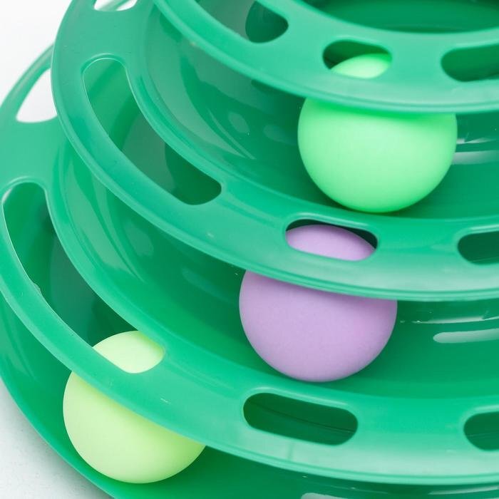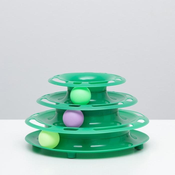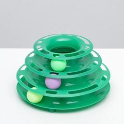 Игровой комплекс "Пирамида" для кошек с 3 шариками,15 x 24 x 13,2 см, зелёный