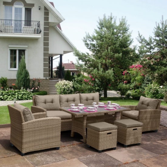 Первоклассная лоза из искусственного ротанга коричневого цвета стойкая к любым атмосферным условиям.