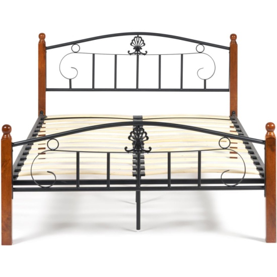 Кровать TETCHAIR РУМБА (AT-203)/ RUMBA Wood slat base дерево гевея/металл, 140х200 см (Double bed), красный дуб/черный id14003