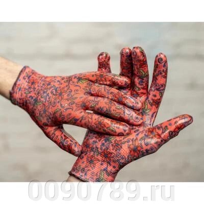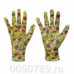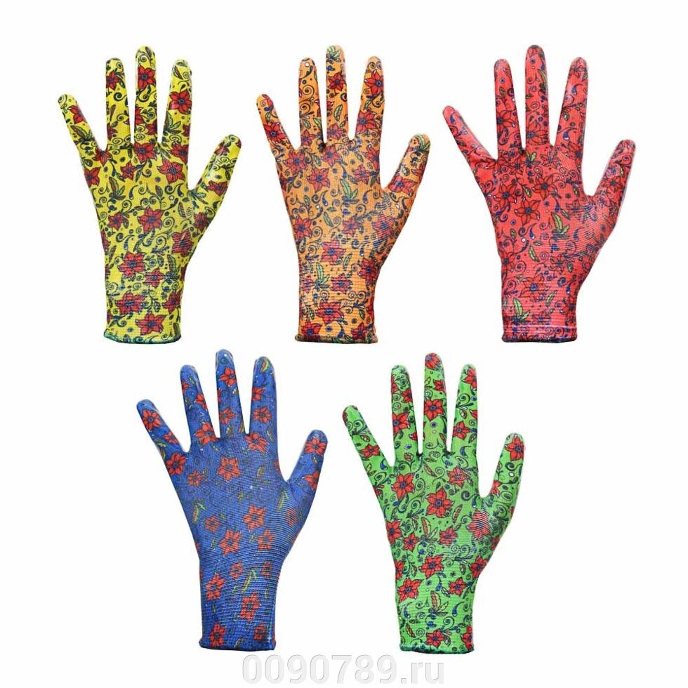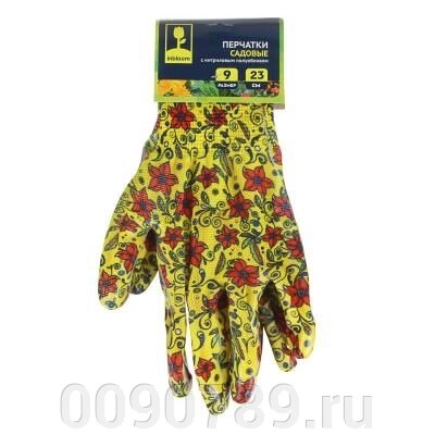 Перчатки садовые с нитриловым полуобливом, полиэстер, 9 размер, 23см, 31гр, цветные 9