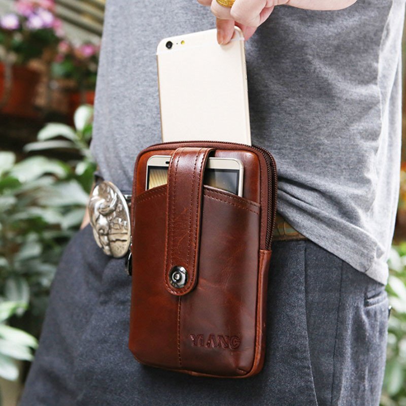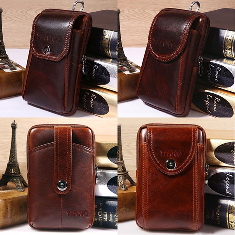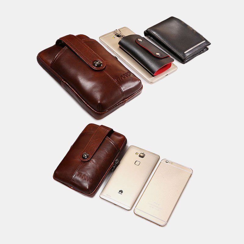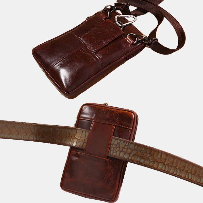 Мужчины Натуральная Кожа Ретро Многофункциональный 6 дюймов Телефон Сумка Кроссбоди Сумка Талия Сумка
