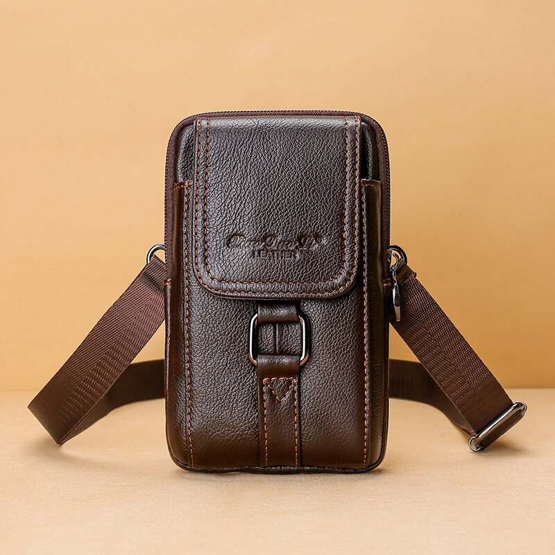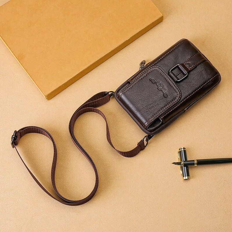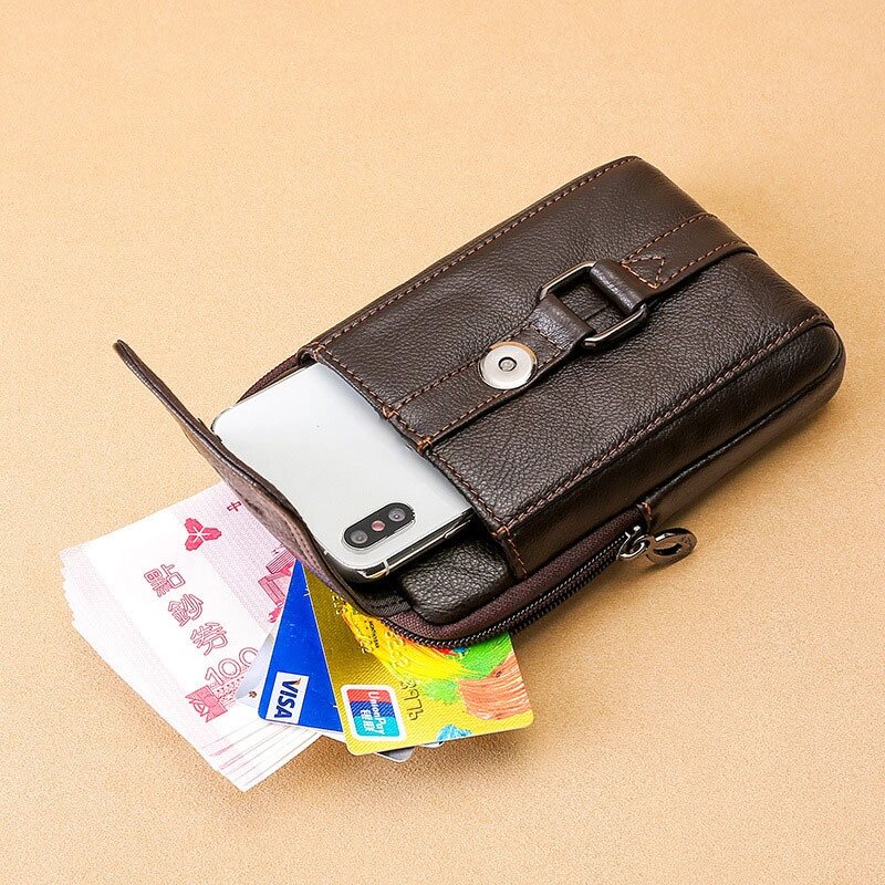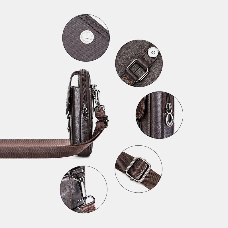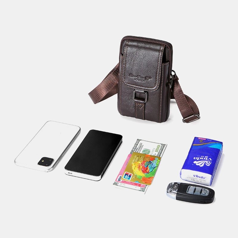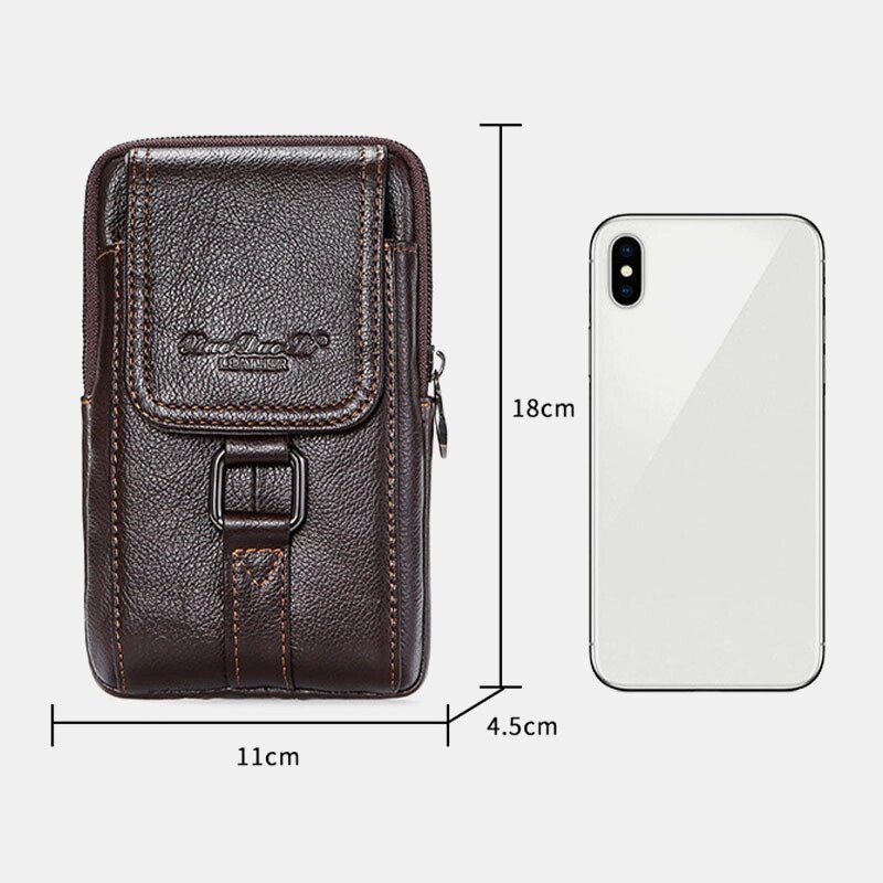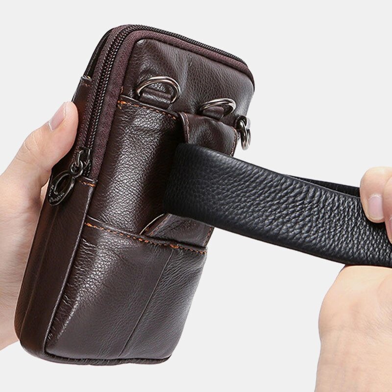Мужчины Натуральная Кожа Многофункциональный Ретро 6.5 дюймов Телефон Сумка Талия Сумка Мини-кроссбоди Сумка