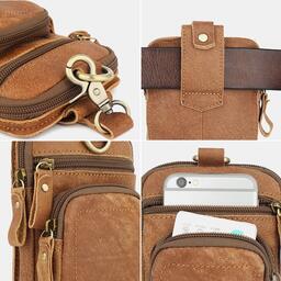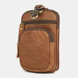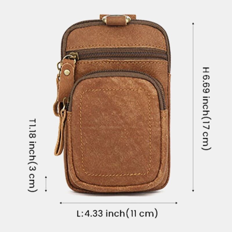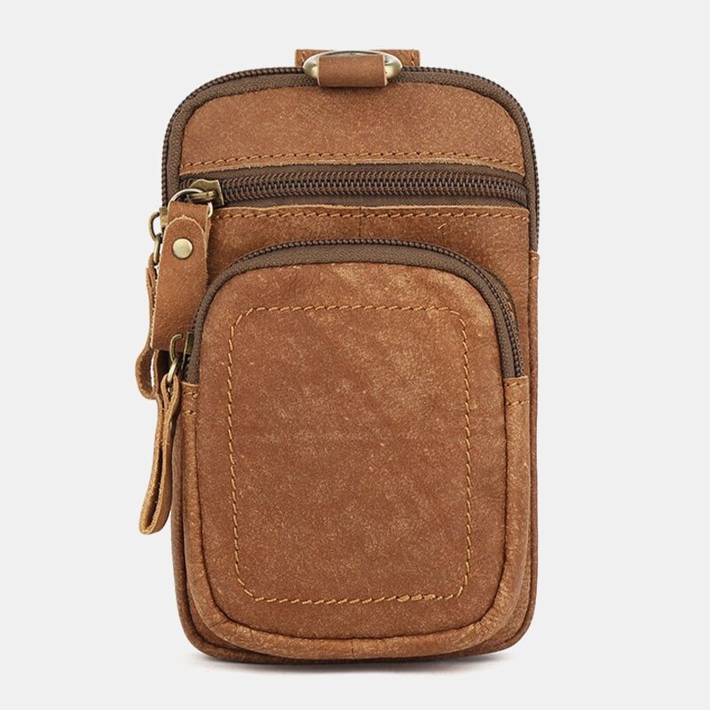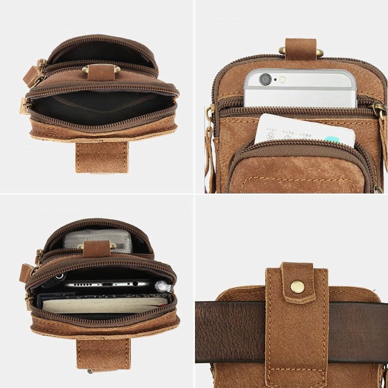 Мужчины Натуральная Кожа Мультикарман Ремень Сумка Ретро 6.5 дюймов Телефон Сумка Талия Сумка С Крюк