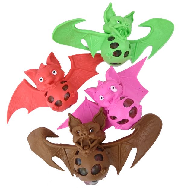 Летучая мышь, внутри которого поместили множество разноцветных шариков орбиз. В ассортименте 4 цвета: салатовый, красный, розовый, коричневый. Размер игрушки 24х5,5х11 см. Расценено поштучно, продается упаковкой по 12 штук. Коробка, 28х21х9 см.