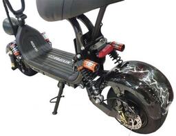 Электроскутер взрослый/подростковый с максимальной нагрузкой до 120 кг. Максимальная скорость движения до 30 км/ч. Мощность мотора 800 Вт, запас хода 70 км. Аккумулятор Li-on 16 А·ч. Время зарядки: 5-8 часов. Вес 37 кг.
