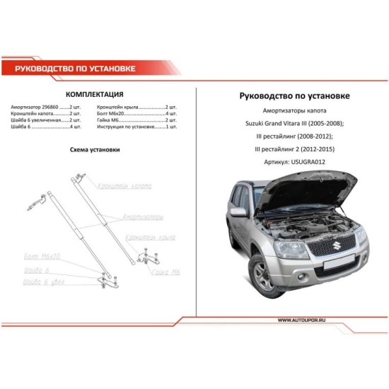 Упоры капота АвтоУПОР для Suzuki Grand Vitara III (2005-2015), 2 шт. USUGRA012