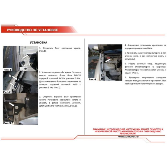 Сохранение штатного угла открытия капота.
