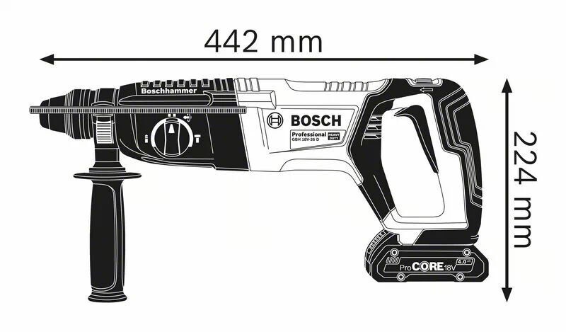 - Дополнительная информация Держатель инструмента: SDS plus. Ограничитель глубины, 210 мм. Техническая ткань. Аккумулятор и зарядное устройство в комплект не входят