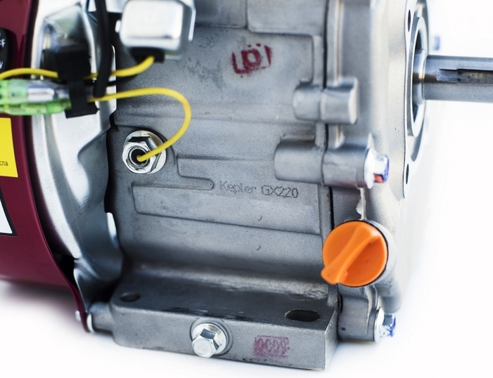 Бензиновый двигатель GX220 с моторесурсом 2500 моточасов. Цилиндр гильзованный. Установлена система аварийного отключения двигателя при низком уровне масла. Подходит для установки на мотоблоки МТЗ, мотокультиваторы, виброплиты, резчики швов.