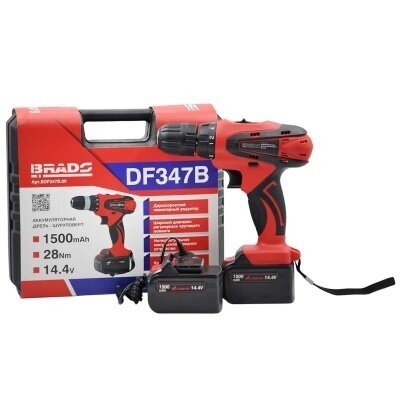 Аккумуляторная дрель-шуруповёрт BRADO DF347B-1 (2 ск,Li-ion 14,4В, 2 акк, 1,5 А/ч, кейс)