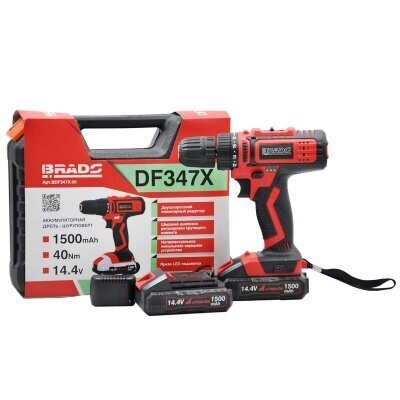 Аккумуляторная дрель-шуруповёрт BRADO DF347X-1 (2 ск,Li-ion 14,4В, 2 акк, 1,5 А/ч, кейс)