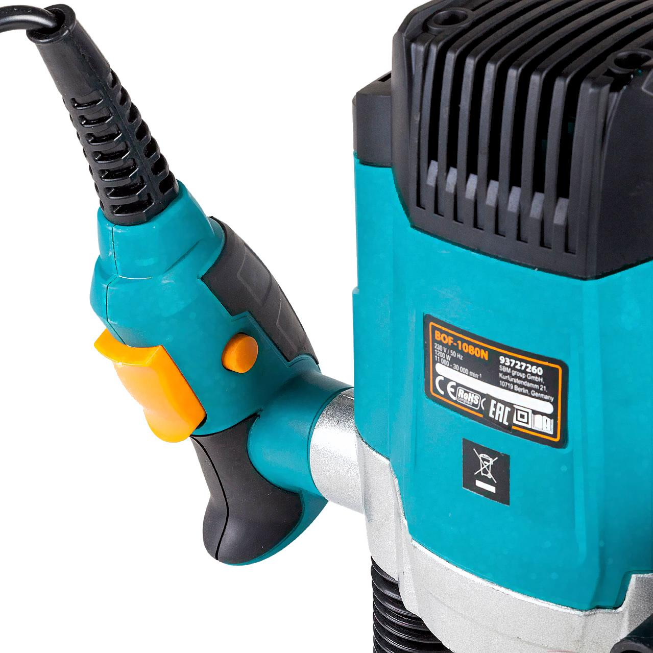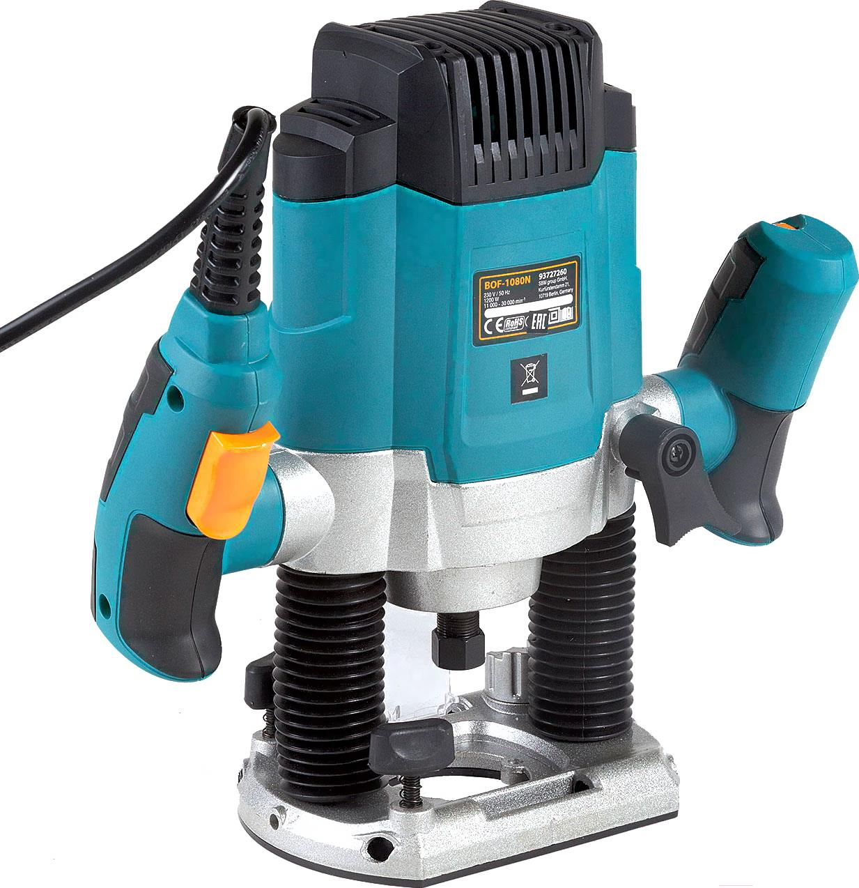 Электрический фрезер не все умеют использовать и не все знают что он умеет. А зря, фрезеры, при небольших навыках, способны на многое, например, производство мебели, изготовление профиля, оконных рам, дверных профилей, различные погонажные изделия и тд. Какой же фрезер выбрать? При выборе следует учитывать технические характеристики, эргономику, комплектацию. Этот инструмент позволяет добиться изящных и точных линий при определенной глубине распила. Первое, чем классифицируется весь электроинструмент, в том числе и фрезер – мощность двигателя, причем, чем большей мощностью обладает агрегат, тем эффективнее он осуществляет распил, защищает от рывков, обеспечивает безупречную чистоту выполняемой работы. Фрезеры, обычно, изготавливаются с двигателями 800 Вт в любительских моделях и 2000 Вт в промышленных. В нашем случае мощность двигателя 1200 Вт – оптимально для начинающих и продвинутых мастеров. Важной характеристикой является жесткость конструкции, от которой напрямую зависит качество выполняемой на фрезере работы. Подошва Bort BOF-1080N выполнена из прочного сплава и избавлена от люфтов. Что касается габаритов, необходимо отметить, что умеренные габариты и относительно малый вес обеспечат неутомительную интенсивную работу в условиях небольших рабочих площадей. Еще одной инновационной характеристикой является электронная регулировка частоты вращения, что позволяет значительно расширить спектр использования фрезера. Например, есть возможность обработки металла и пластмасс, в этом случае, работать нужно на низких оборотах. Регулировка частоты вращения так же потребуется при работе с фрезами большого диаметра. Глубина обработки материала отражает функциональные возможности инструмента, у тяжелых профессиональных она может составлять 60 мм. В представленном экземпляре глубина обработки составляет 45 мм, вполне подходящая для легкого полупрофессионального аппарата. Комплектация и дополнительные преимущества фрезера: - Выключатель встроенный в рукоятку- лучший вариант - Фиксатор глубины выполнен в виде рычага рядом с рукояткой. - Револьверная головка. Позволяет быстро изменить высоту опускания фрезы при работе в несколько проходов. - Параллельный упор. Применяется для ведения инструмента вдоль кромки детали. - Добавочная цанга 6 мм. Для использования различных фрез - Фреза 8 мм - Адаптер для подключения пылесоса. Для работы в помещении без пыли и мусора.
