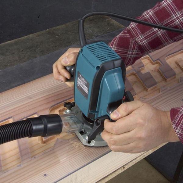 Удобная форма прорезиненных рукояток фрезера Makita RP0900K позволяет оператору комфортно удерживать инструмент и следить за процессом работы.
