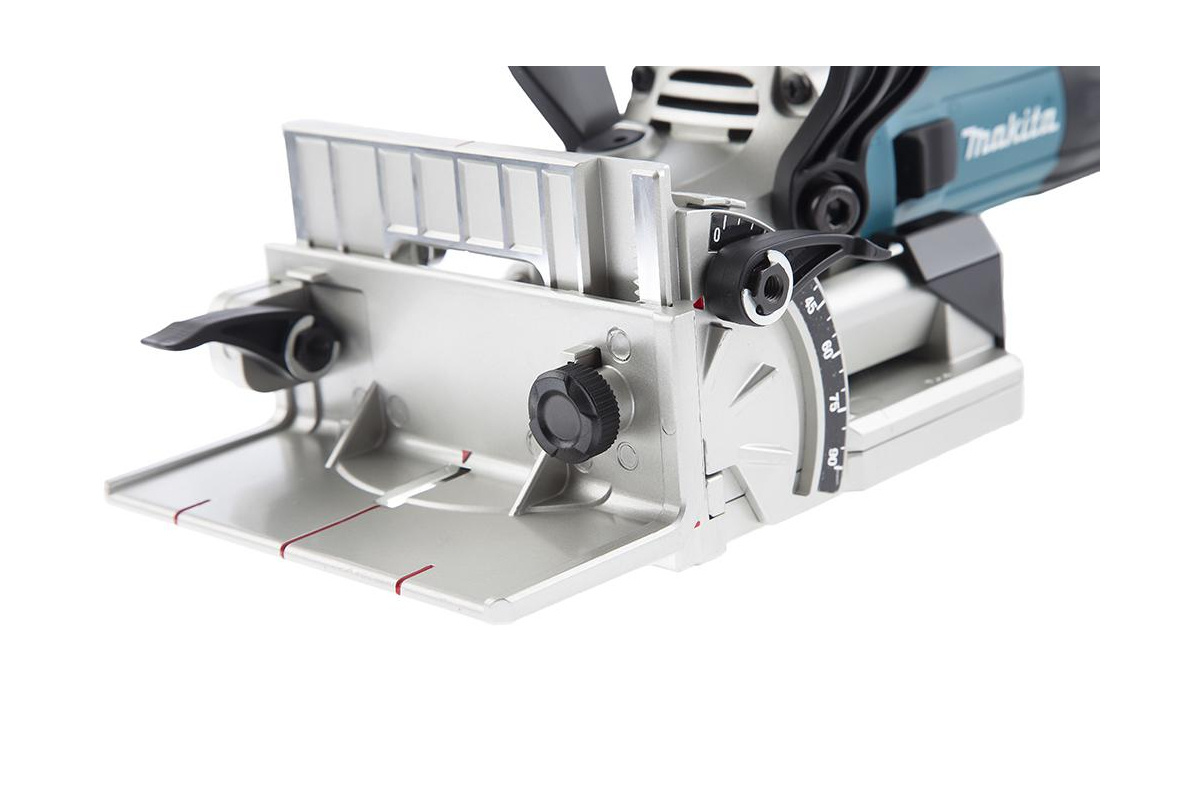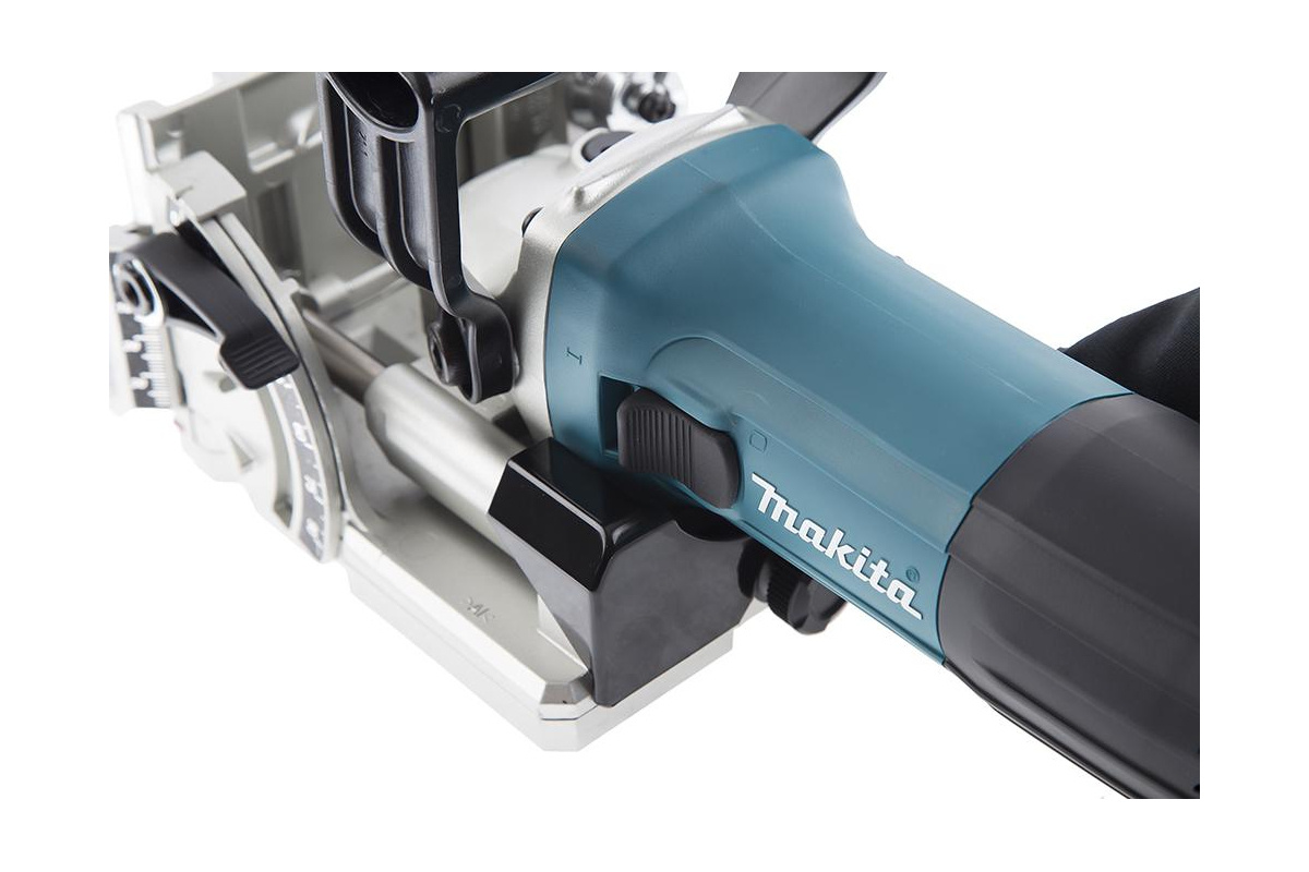 Шпоночный фрезер Makita PJ7000 имеет мощный двигатель на 710 Вт. Блокировка шпинделя обеспечивает быструю замену фрезы. Пылесборник обеспечивает чистоту на рабочем месте. Есть возможность точного выбора нужной глубины обработки в пределах от 0 до 20 миллиметров. Данная модель поставляется в чемодане, что решает вопрос хранения и транспортировки.