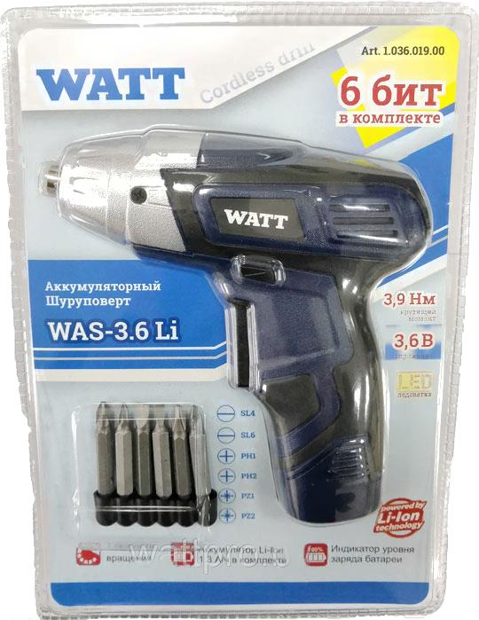 Отвертка аккумуляторная WATT WAS-3.6 Li 1.036.019.00