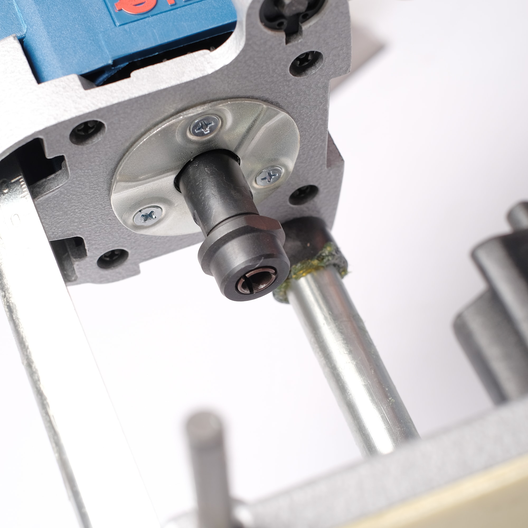 ► Цанговый патрон Ø8 мм, зажимаемый двумя ключами, обеспечивает надежное крепление фрезы