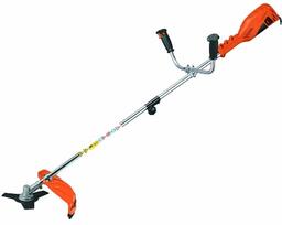 Легкий и надежный электрический триммер предназначен для скашивания любой травы. Мощный двигатель расположен в верхней части триммера, поэтому всегда остается чистым и позволяет косить даже влажную траву. Защита от случайного включения. Эта газонокосилка может работать как триммер с двойной леской, так и как электрокоса со специальной режущей металлической фрезой. Фреза стальная, хорошо срезает дикорастущие растения и мелкие кустарники. Прямая разъёмная штанга облегчает транспортировку и хранение.
