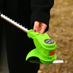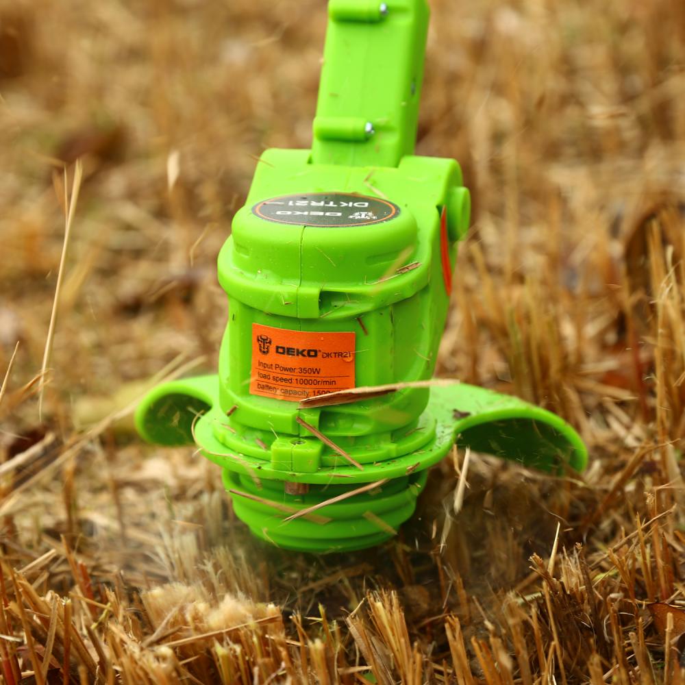 Триммер садовый аккумуляторный DEKO DKTR21 - компактная модель, удобная для скашивания травы в труднодоступных местах, вдоль заборов, клумб, подравнивания газонов, краев садовых дорожек.