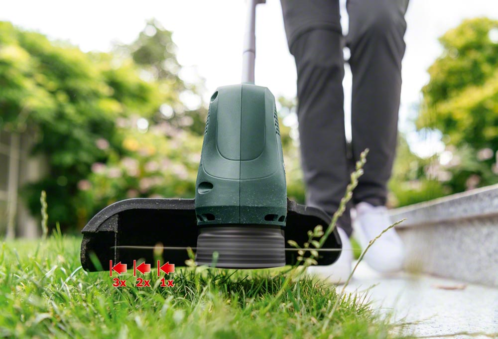 Универсальная головка. Триммер оснащен функцией наклона и обработки краев 180°.