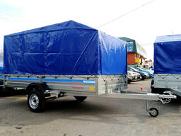 Прицеп комплектуется 4-х листовой рессорой Alko. На полу влагостойкая фанера толщиной 9 мм. Ступица ВАЗ-2108, амортизаторы ВАЗ 2101. Ось прицепа квадратного сечения, что увеличивает прочность по сравнению с осью круглого сечения. Прицеп оборудован стандартным набором световых приборов.