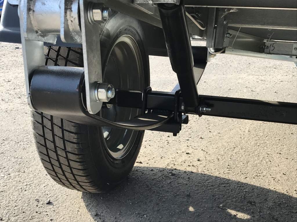 Прицеп комплектуется 1-на листовой рессорой Газель. На полу влагостойкая фанера толщиной 9мм. Ступица ВАЗ-2108, амортизаторы ВАЗ 2101. Ось прицепа квадратного сечения, что увеличивает прочность по сравнению с осью круглого сечения. Прицеп оборудован стандартным набором световых приборов.