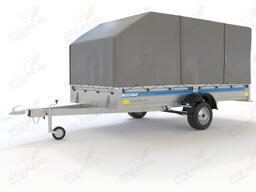 Открывается задний и передний борт. Задний и передний борт усилен фанерой и имеют замки для открывания. На прицепе есть функция САМОСВАЛА.