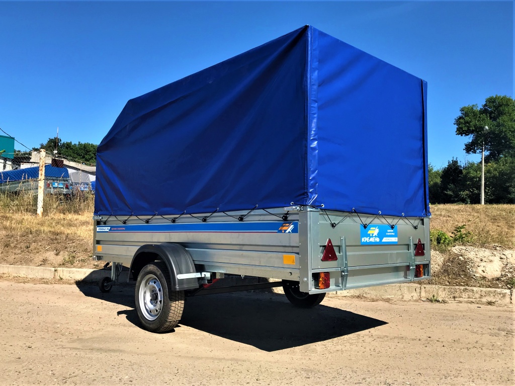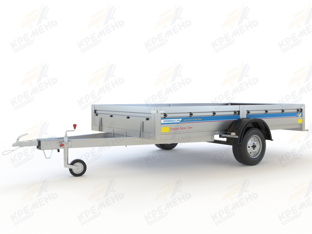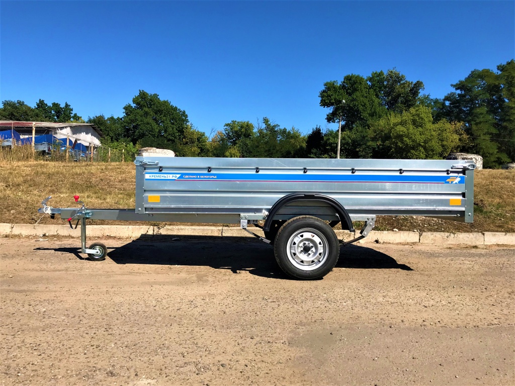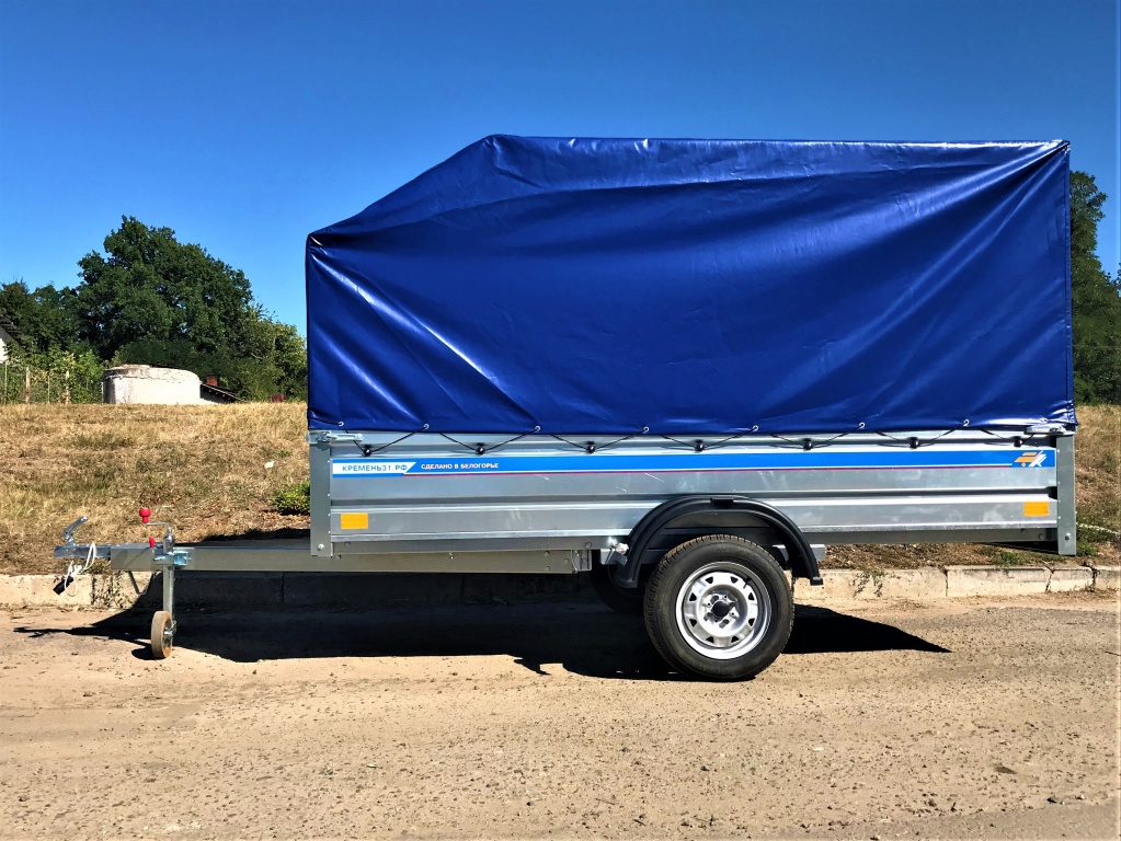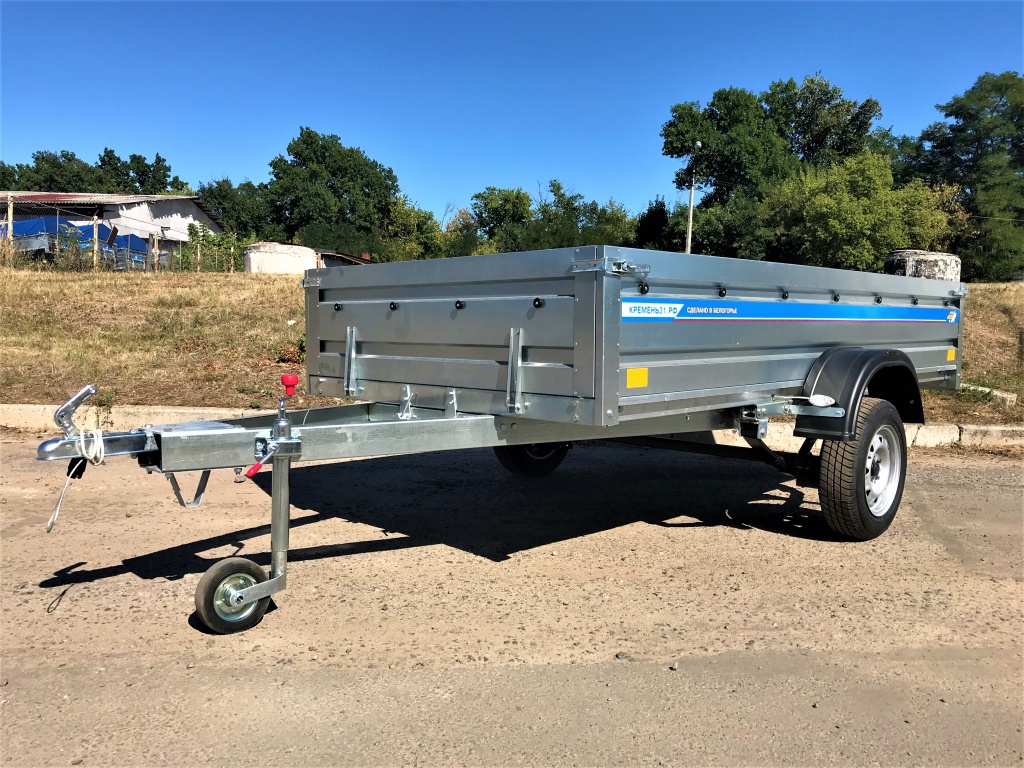 Прицеп комплектуется 4-х листовой рессорой Alko. На полу влагостойкая фанера толщиной 9мм. Ступица ВАЗ-2108, амортизаторы ВАЗ 2101. Ось прицепа квадратного сечения, что увеличивает прочность по сравнению с осью круглого сечения. Прицеп оборудован стандартным набором световых приборов.